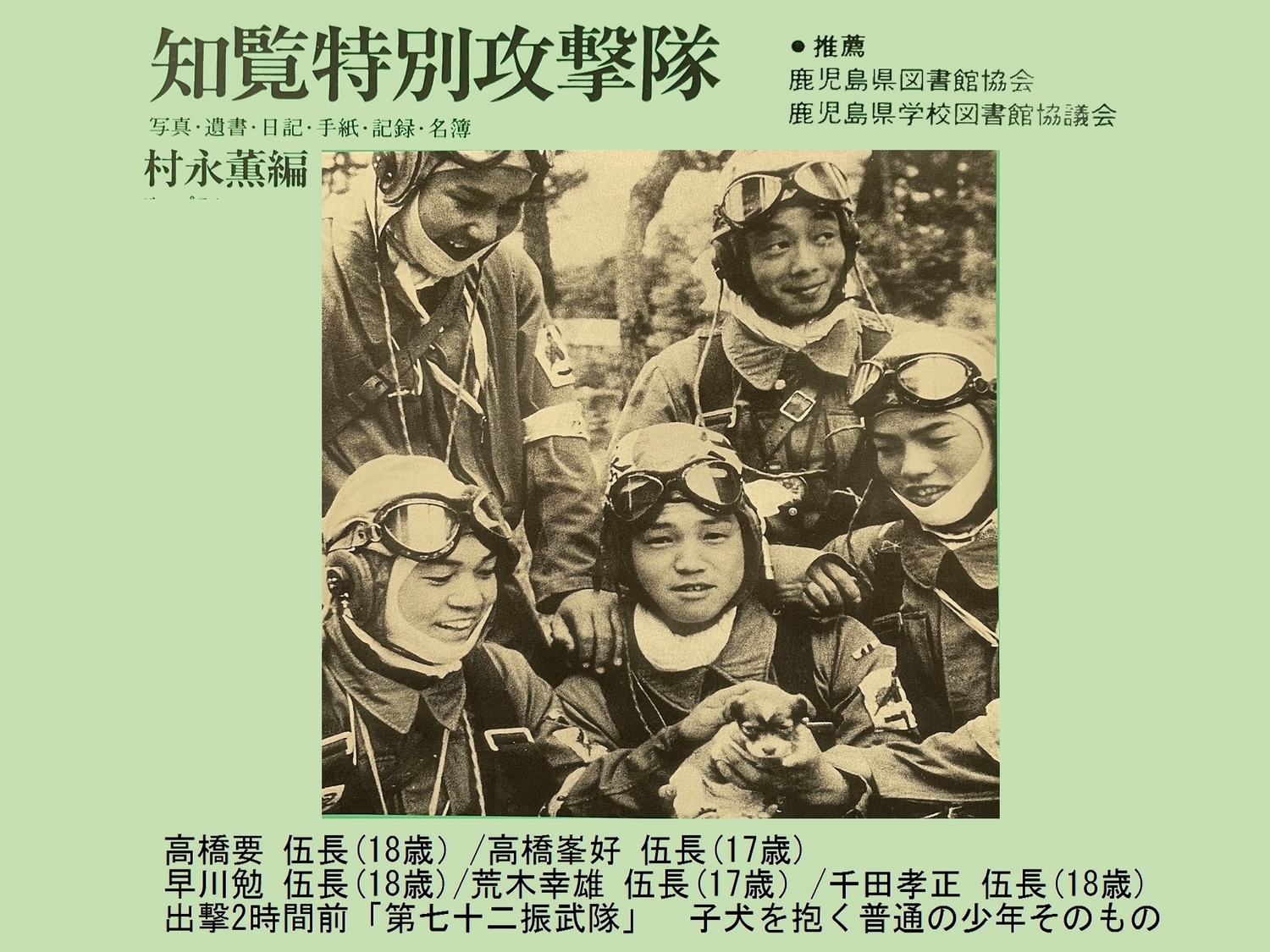 特攻機は 遂に返ってきませんでした国を思い 父母を思い 永遠の平和を願いながら勇士は征ったにちがいありません。御霊のとこしえに安らかならんことを祈りつつ、りりしい姿を永久に伝えたい心をこめて、ああ開聞の南に消えた勇士よ。